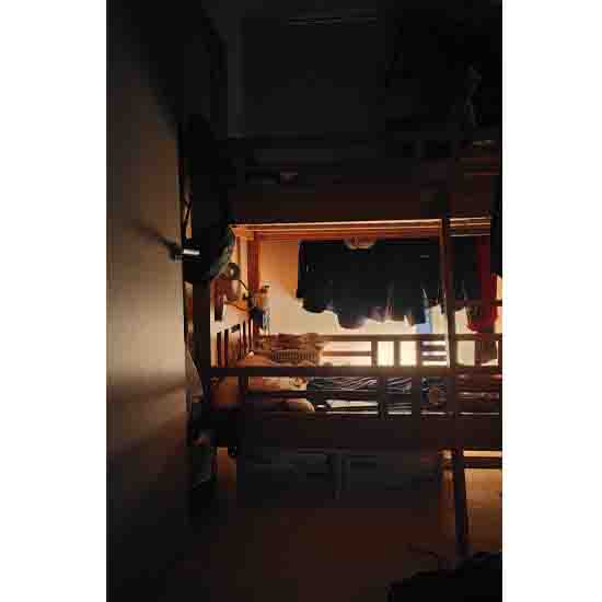 書棚の逆側から2段ベッドの枕側の壁までポールを通して上下2段のワードローブにしました。思ったより現時点で余裕なくいっぱいになってしまい焦ります、また次の対策を考えねば( ̄▽ ̄;)