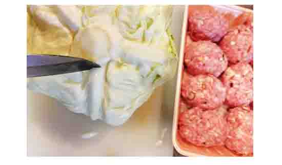 さすが良いキャベツ、外側からキレイに10枚取れました。これで大きめのキャベツ巻きが10個できます。キャベツは芯を断ち切って、芯側から取るとキレイに剥がれます